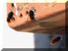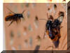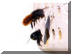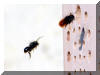 fliegen vereinzelt um die angelegten Kammern in den Brutröhren mit