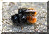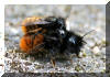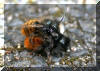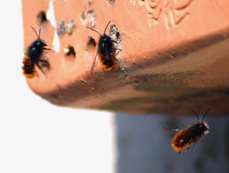 Hierzu trägt eine Rote Mauerbiene feuchten Lehm zur