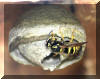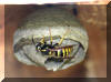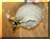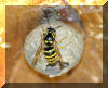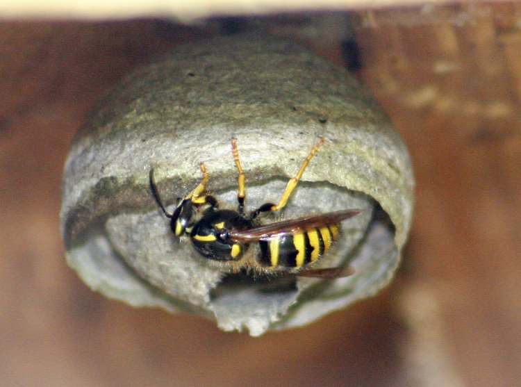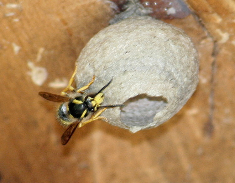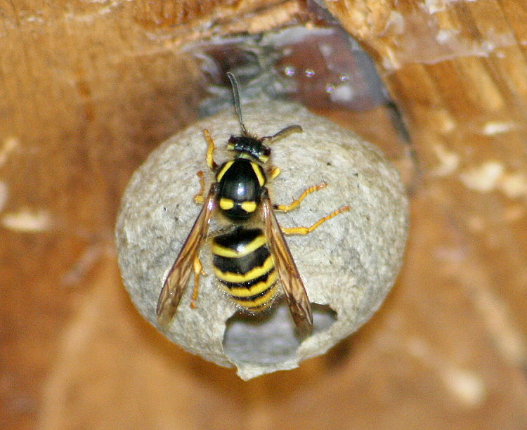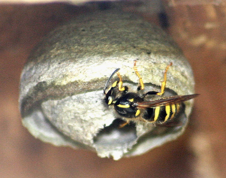 Ein Punkt auf dem Stirnschild erkennbar - Evtl. Waldwespe ?