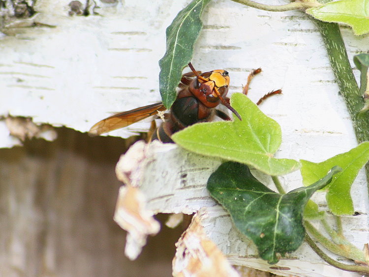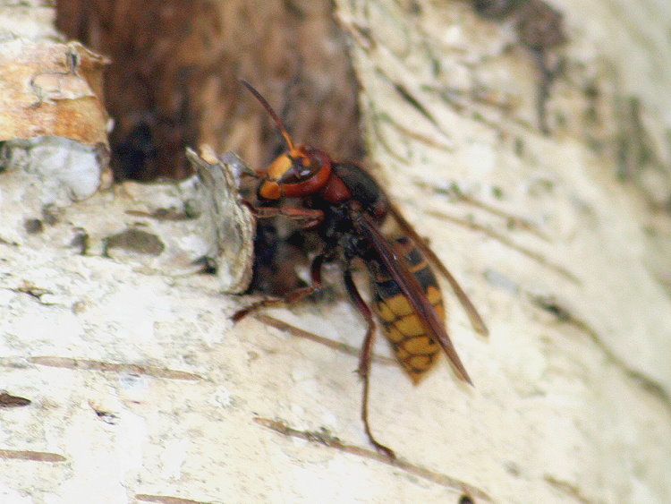 Birke dient den Hornissen als Baumaterialquelle.