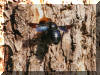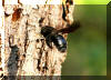 Insgesamt fünf blaue Holzbienen haben sich am morschen Apfelbaum