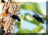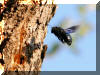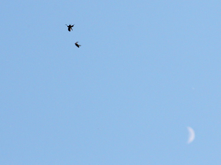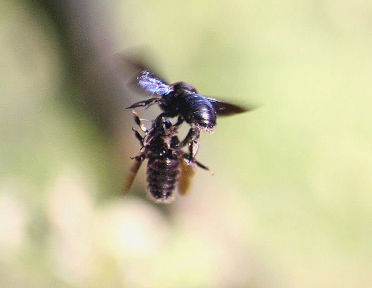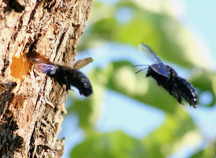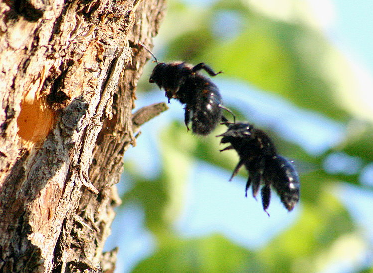 ein kleines Gerangel, bei dem sich die Holzbienen senkrecht in den