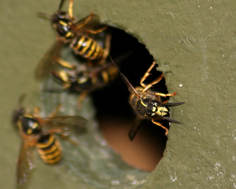 ungewöhnlich viele Wespen, die ihn umkreisten. Beim näheren hinsehen