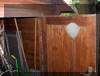 Herr M., als er die Tür seines Geräteschuppens im Garten