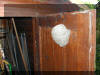 öffnete, um ein Holzbrett heraus zu nehmen. An der Tür