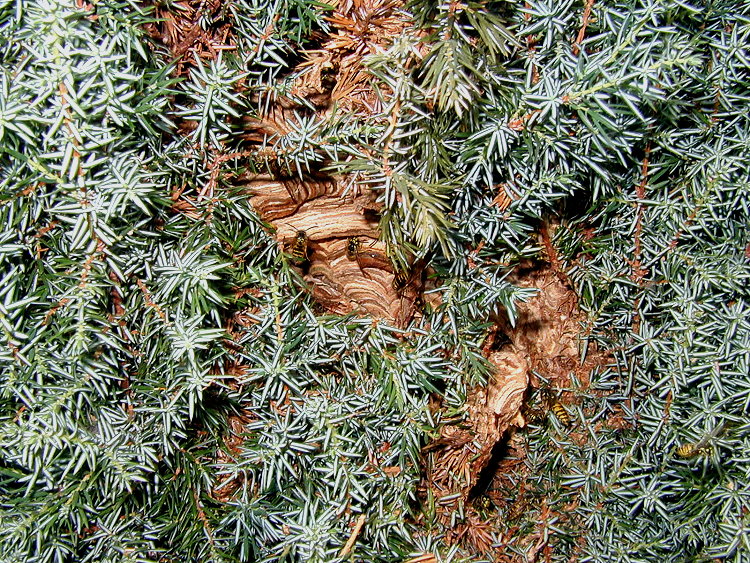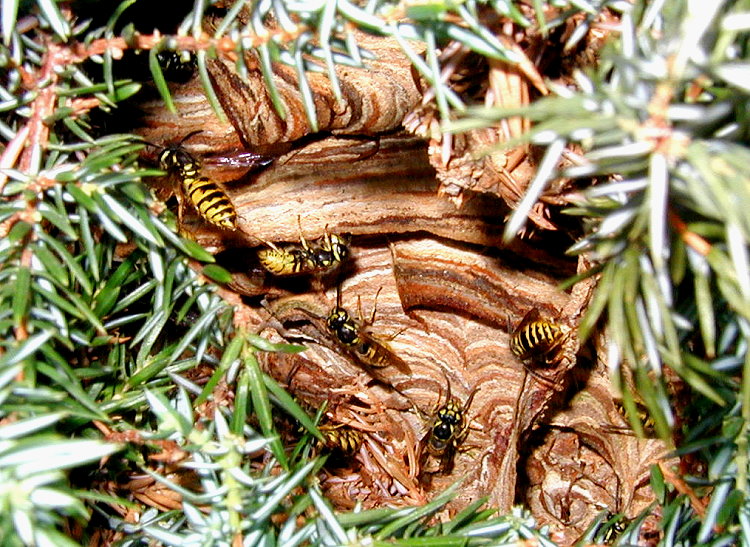 im Gebüsch, nein auch die gemeine Wespe nutzt zeitweise den Schutz
