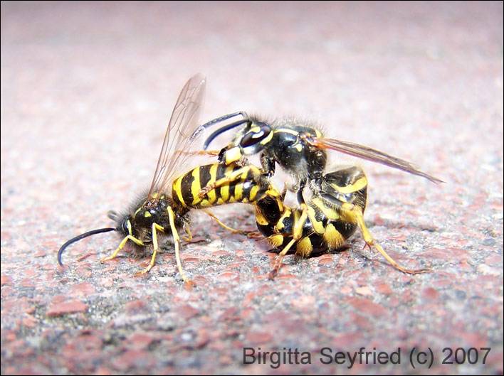 sie die Kopulation einer gemeinen Wespe. Bei der Beobachtung und während