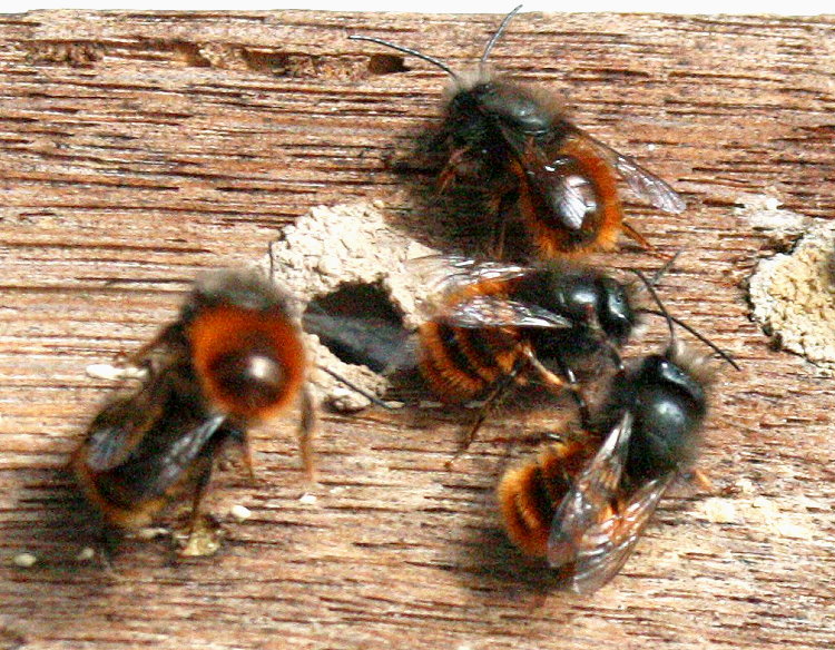 fliegen vereinzelt um die angelegten Kammern in den Brutröhren mit