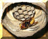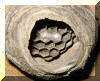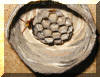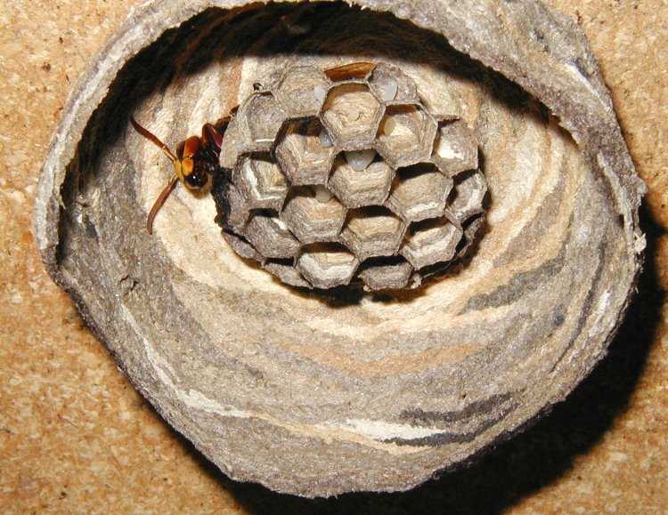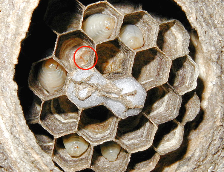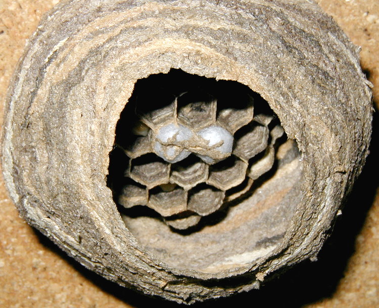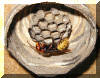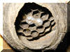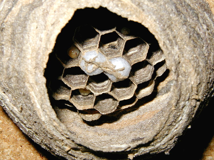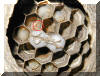 gewachsene Wabe. In den bereits 11 Wabenzellen liegt jeweils ein Ei.