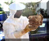 Eisensäge wird vorsichtig der Wabenbau vom Standort abgetrennt.
