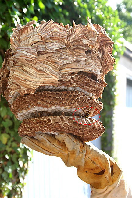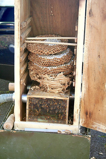 langsam geöffnet werden und das eigentliche Hornissennest wird sichtbar.