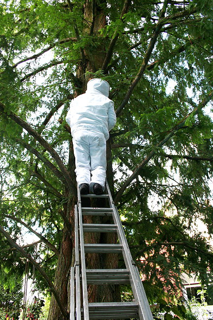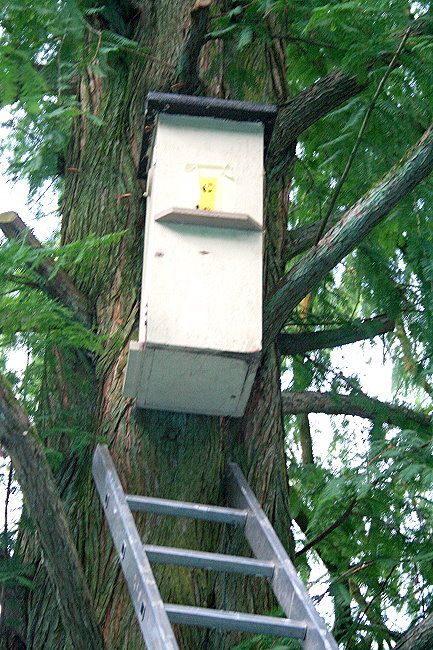 alten Neststandort zurückkehrende Hornissen abgefangen. Nach gut 30