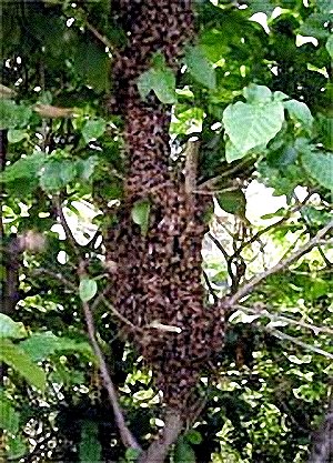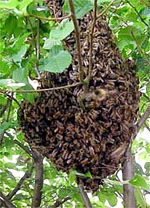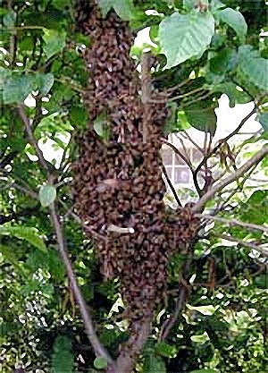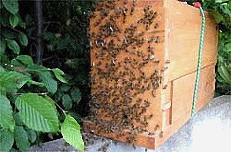 wird der Kasten mit dem offenen Einflugloch unter den Schwarm gestellt.