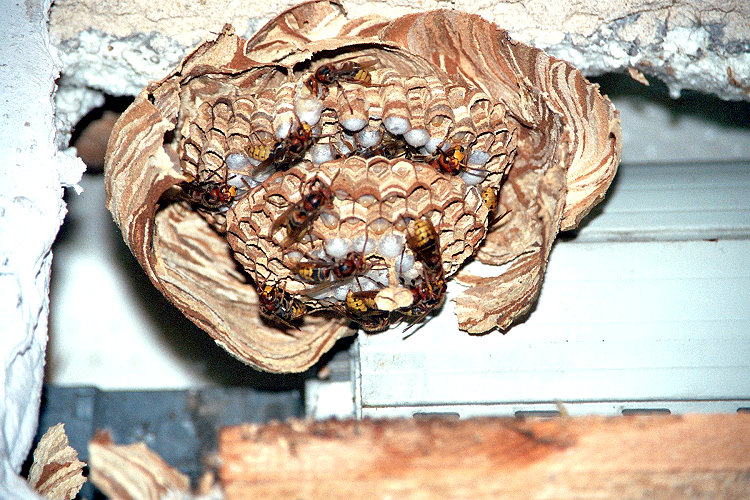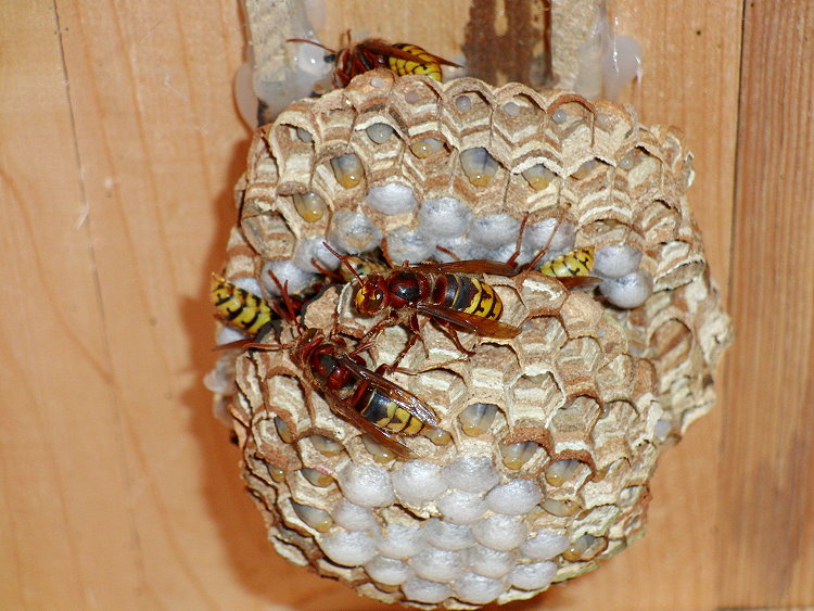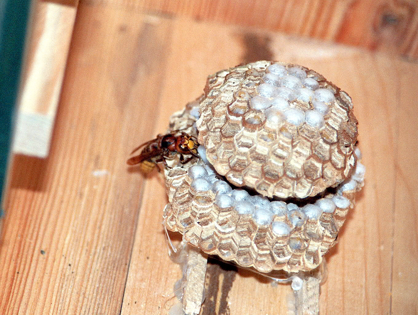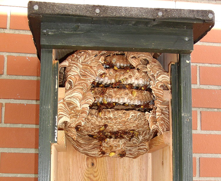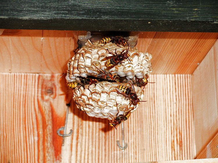 Hier noch einmal, im Vergleich, das gerade umgesiedelte Hornissennest