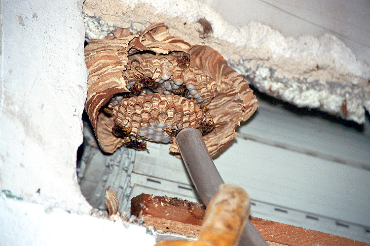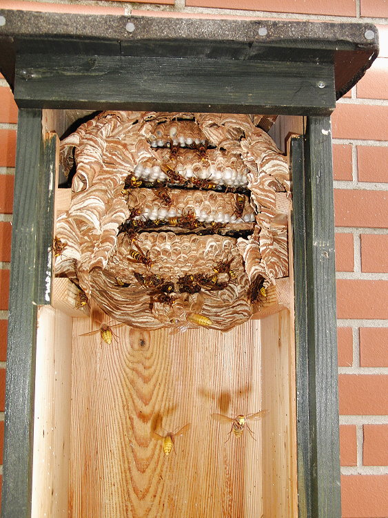Vergleich zum Umsiedelungstag am 08.07.09 ist das Hornissennest bis