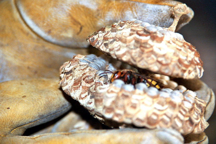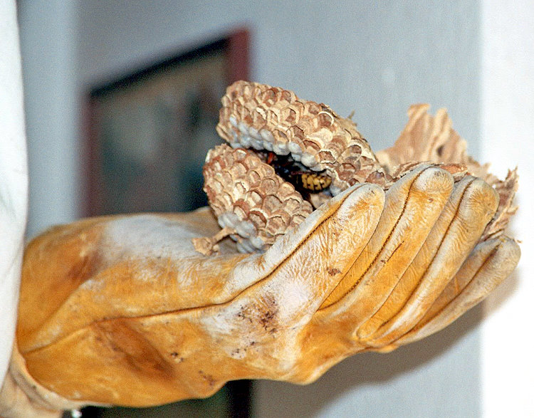 - Verlassenes Hornissennest im Größenvergleich zur Umsiedelung
