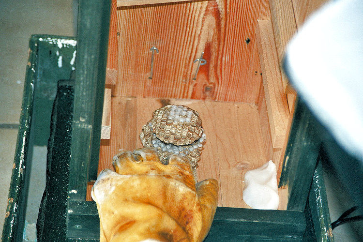 Umgesiedeltes Hornissennest am Feuerwehr-Schlauchturm