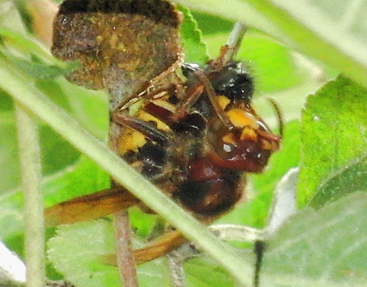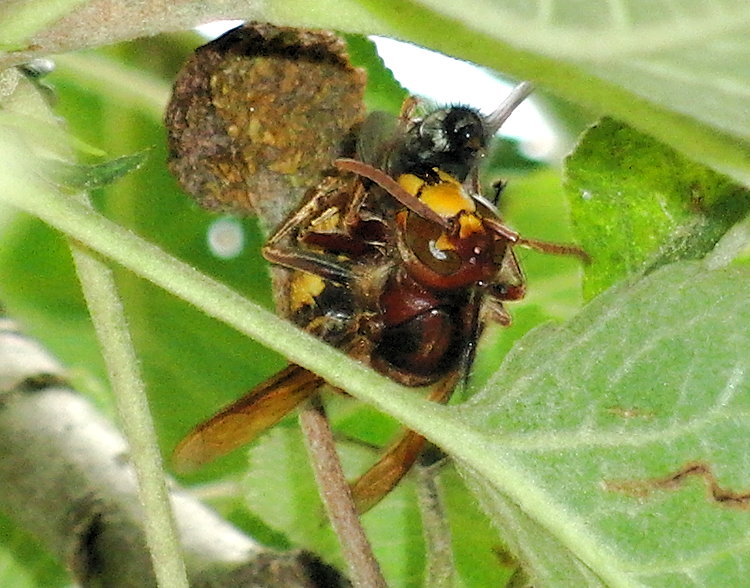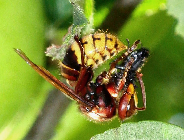 schnell gepackt. Schwerfällig fliegt dann die Hornisse mit der Beute an ein