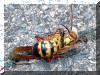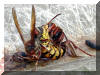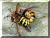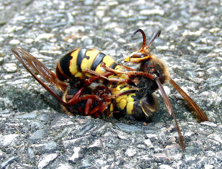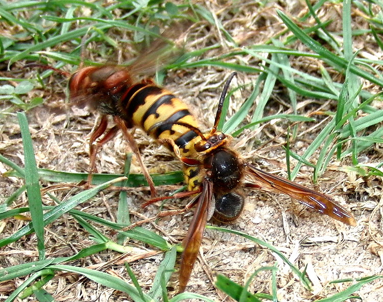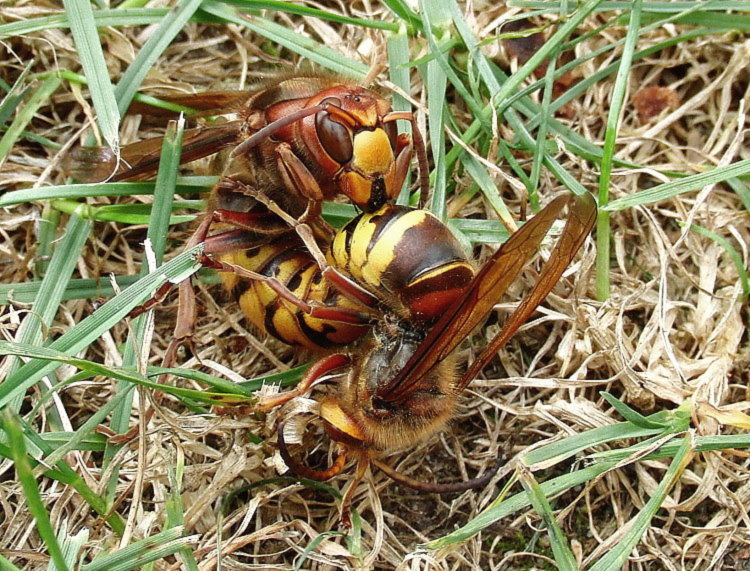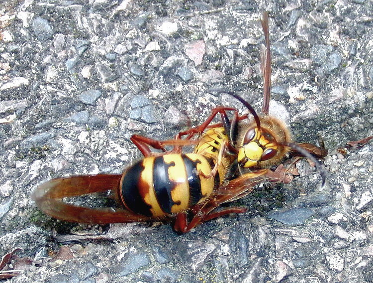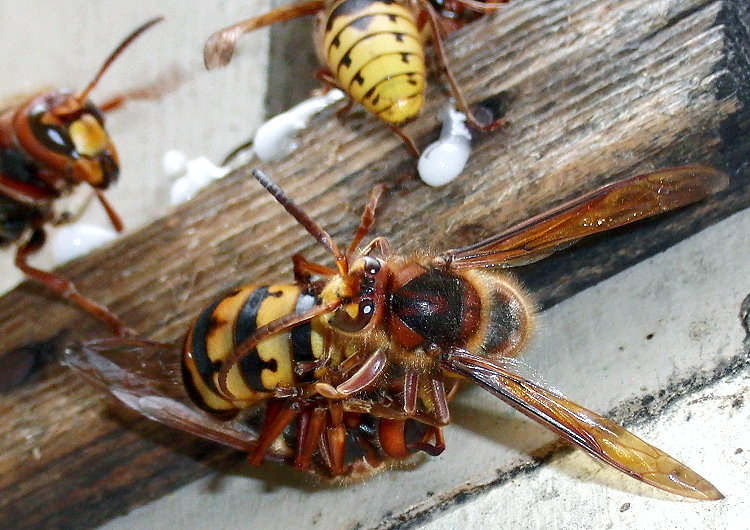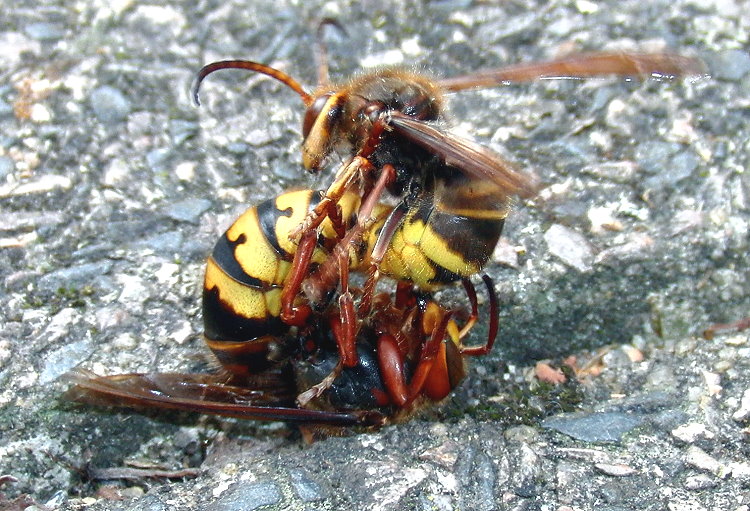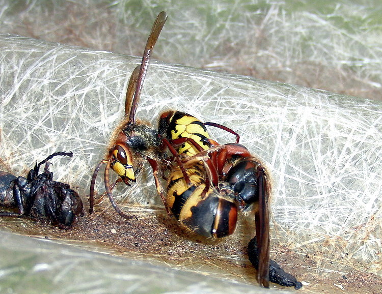 Hornisse zeigte irgendein Verteidigungsverhalten.