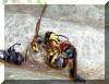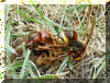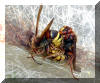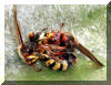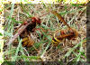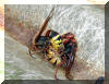 Mandibeln bearbeitete das Weibchen den Hinterleib des Männchens. Ich