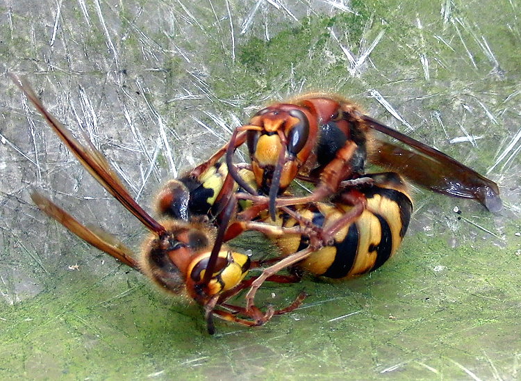 Hornissenpaar etwa 10 Minuten in der Aufgenommenen Position, direkt