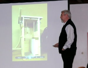 )und zeigte praktisch die Handhabung des gut durchdachten Umsiedelungskastens.