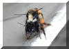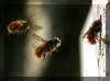 "Traube" mit mehreren, weiß maskierter Männchen an der Wildbienennisthilfe