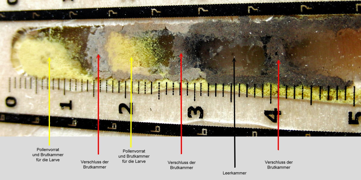 der letzten Brutkammer und dem Nestverschluss. Diese Leerzelle bietet den Larven