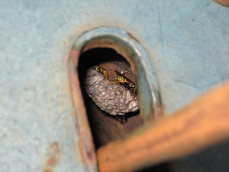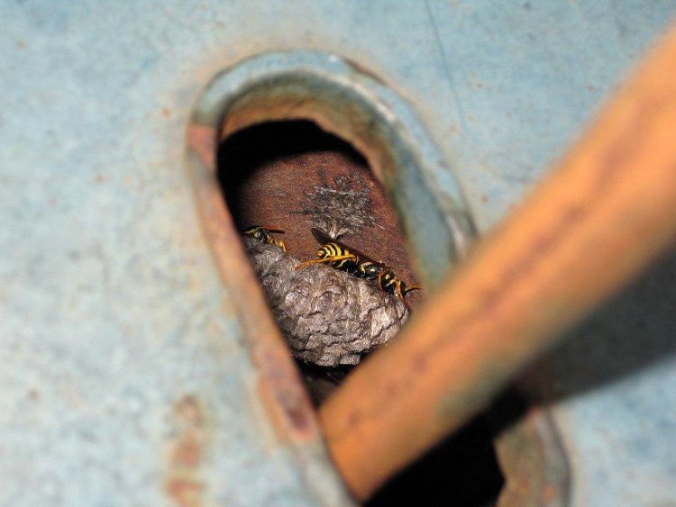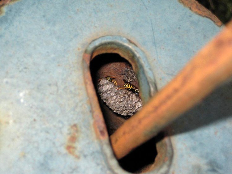 Hier gründet eine Feldwespe ihr kleines Nest im