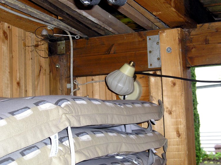 dem dem Nest (schwarz markiert). Es ist ein kleiner Spalt am Dach des