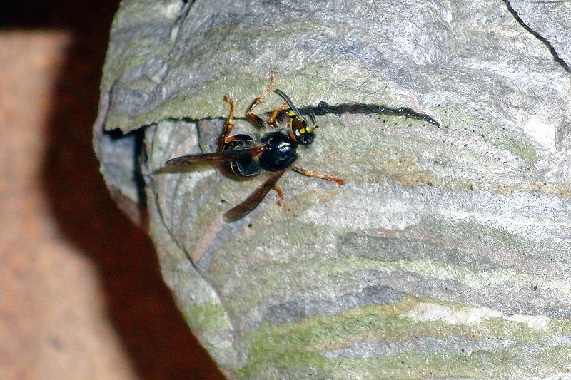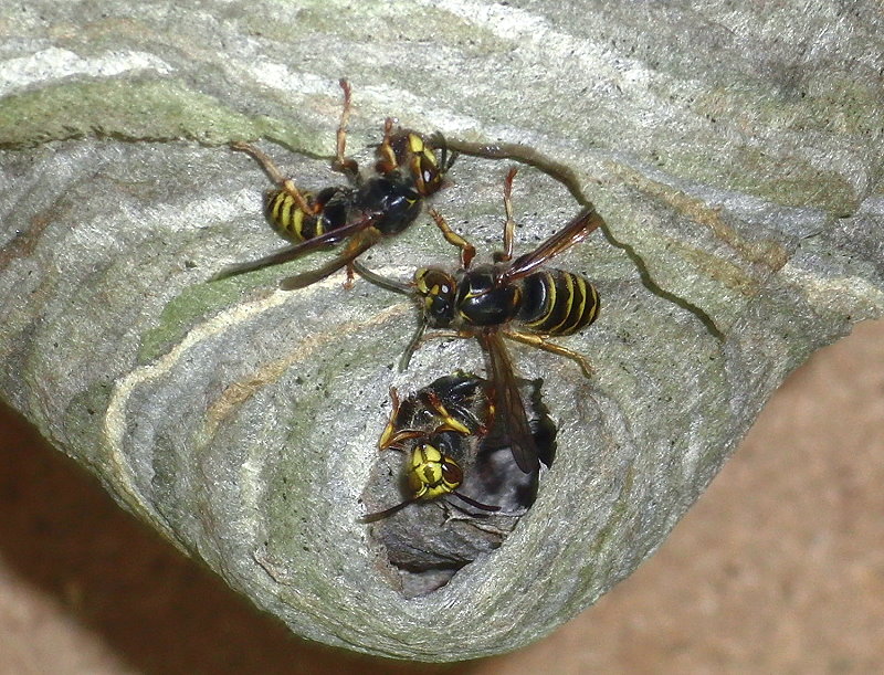 als auch der gelben Form von Dolichovespula Media im Nest.