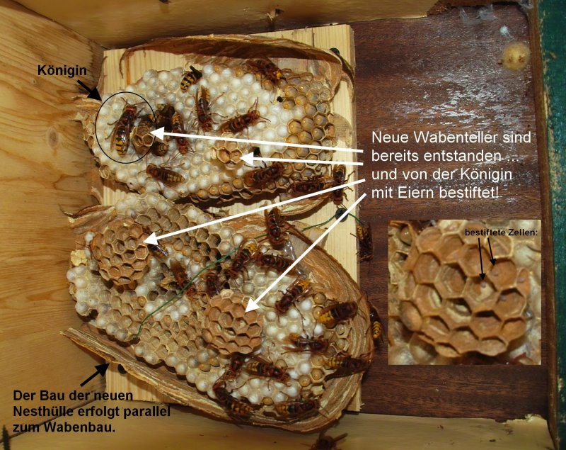 unteren Bereich des Nestes bereits begonnen, neue Waben zu bauen. |