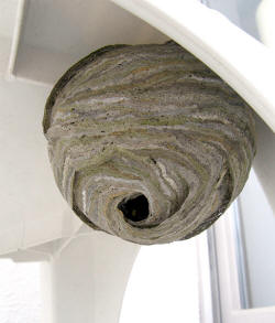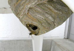 Nest der sächsischen Wespe, unter dem Balkonstuhl von Matthias Schmid.