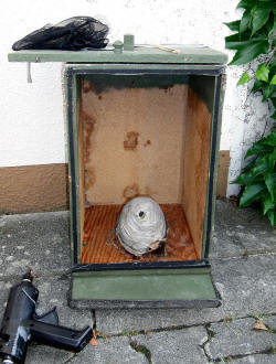 abgefangenen Wespen sich beruhigen und nach und nach das Nest finden und