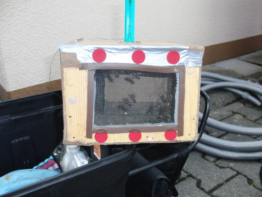 Mehrmaliges klopfen am Umsiedlungskasten bewegt die meisten Tiere, die