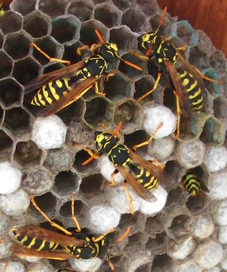 Bild 3 + 4 erkennen: Für den Waben- und Zellenbau wurde blau gefärbtes