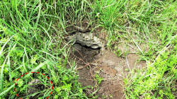 einem Tier ausgegraben? - Freigelegtes Erdnest der deutschen Wespe