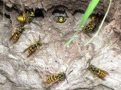 Ein Nest der Deutschen Wespe an einer