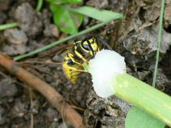 Vor dem Nest liegen zwei Wabenteile (Bild 1). Sicher hatte ein Tier dort
