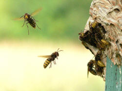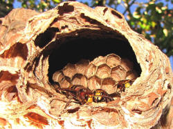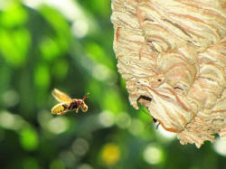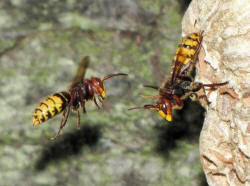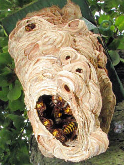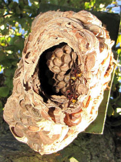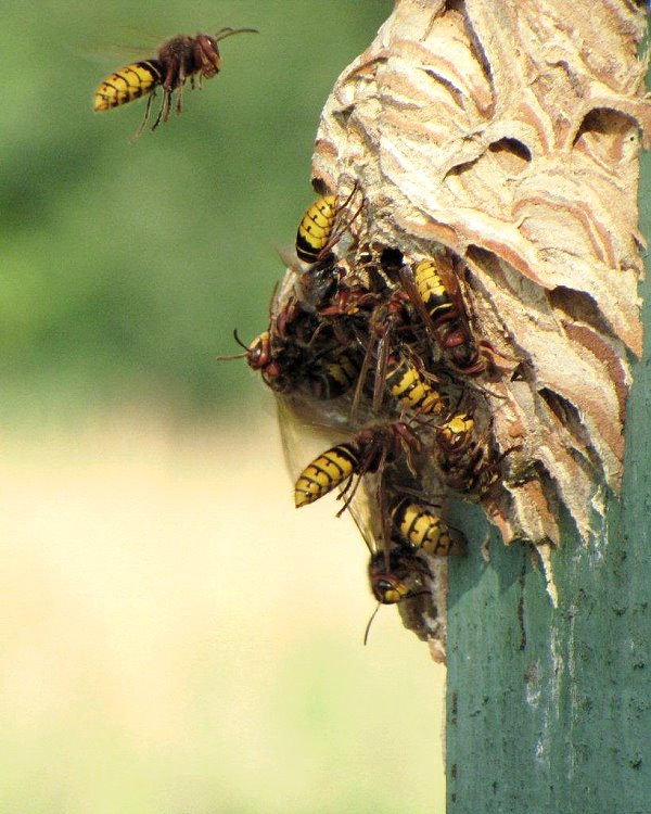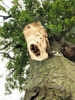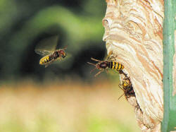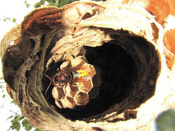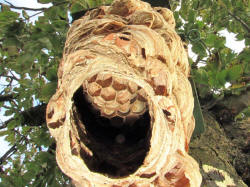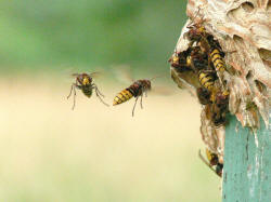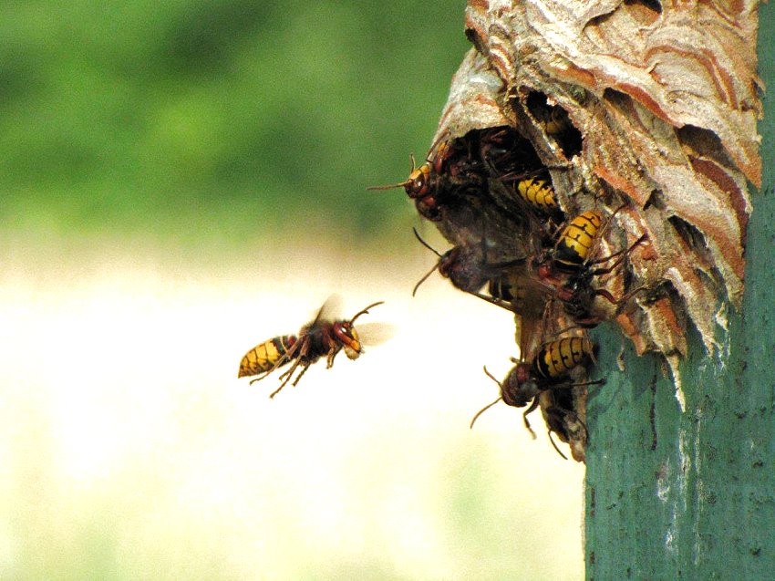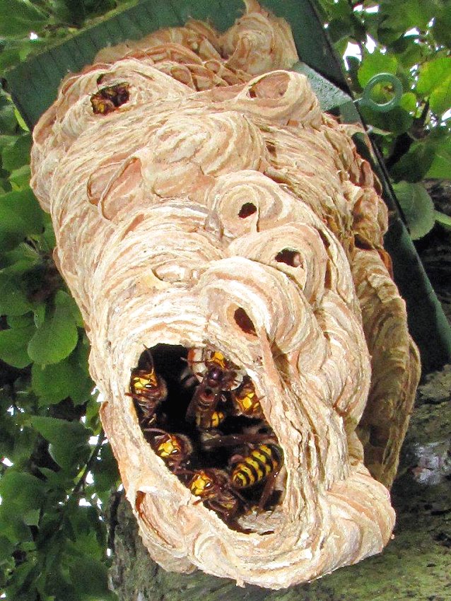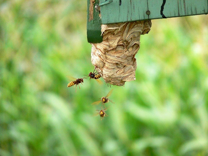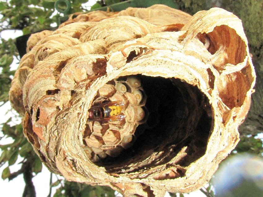 Nest nähern und gefahrlos von unten Aufnahmen in das Hornissennest