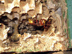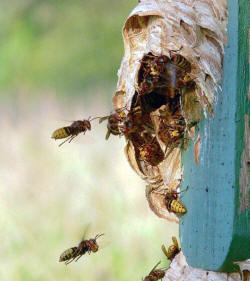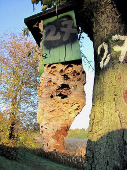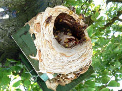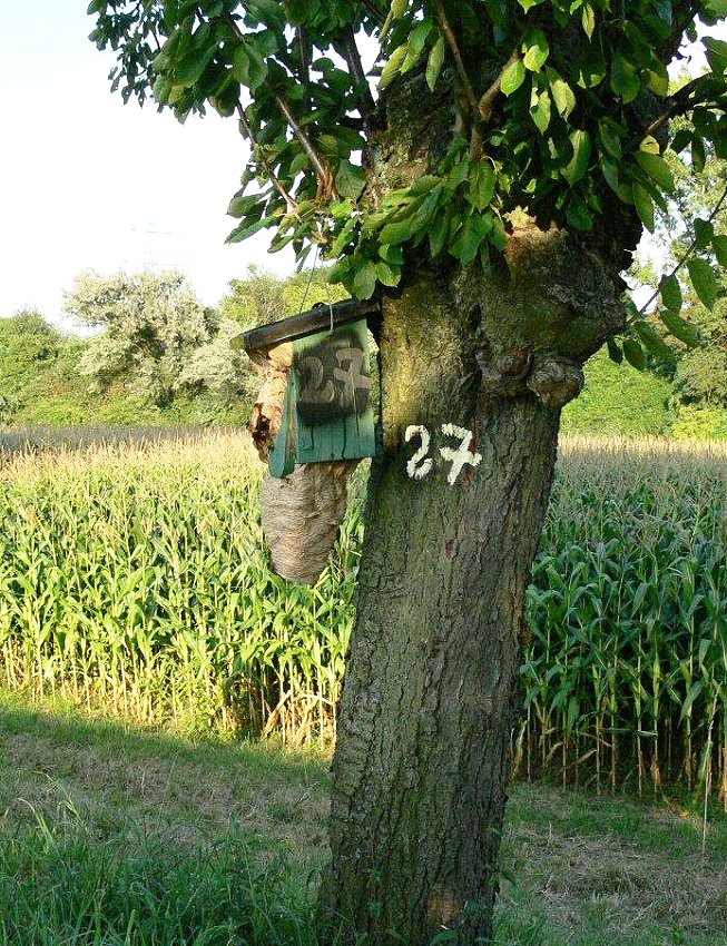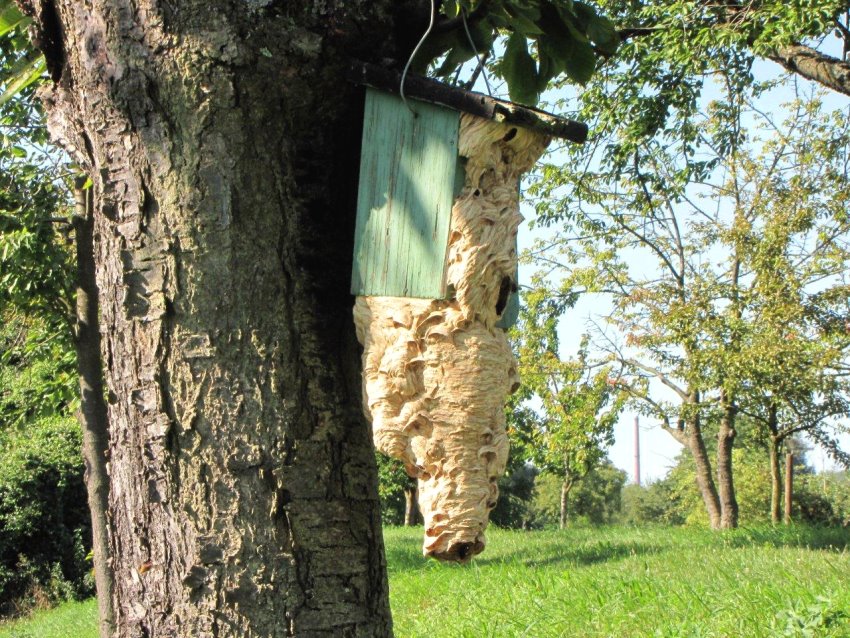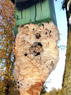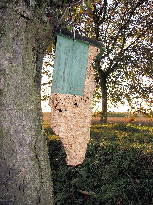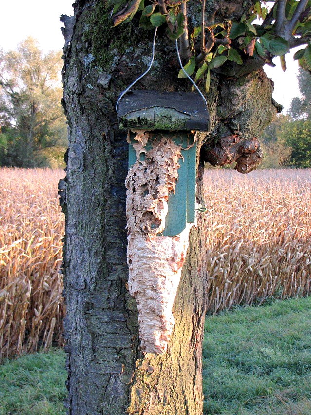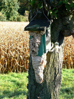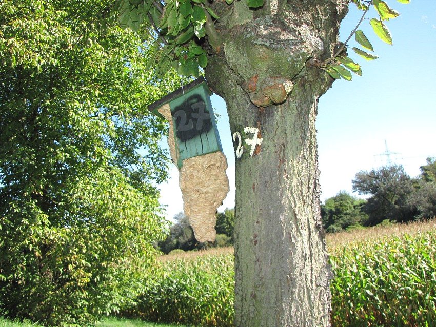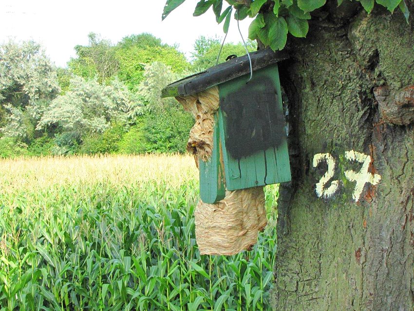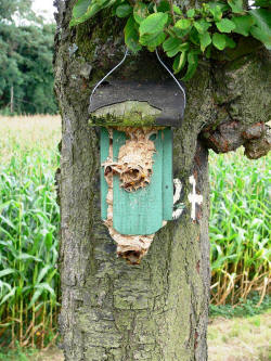 Hornissennest in einem Vogelnistkasten in den Rheinauen bei Eggenstein nähe