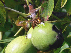 gelegene Walnussbaum wird von den Männchen umflogen.