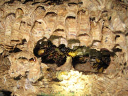 Arbeiterinnen am unteren Nestrand und beobachten die Umgebung.