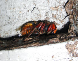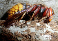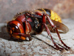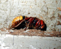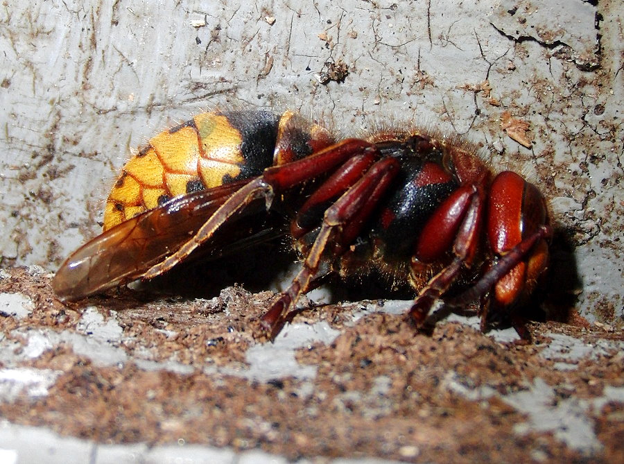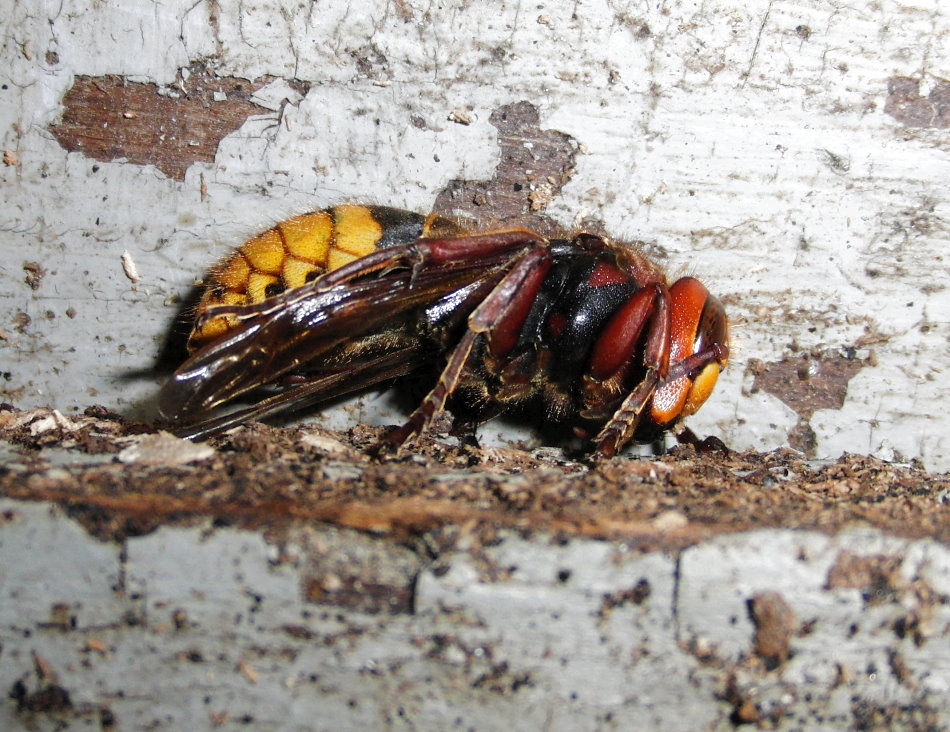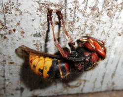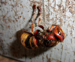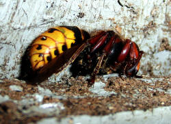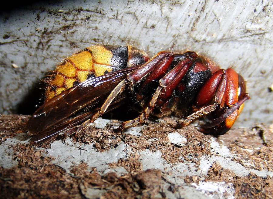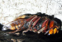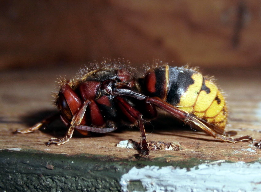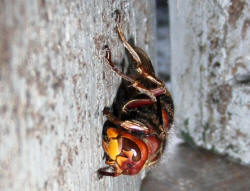 Hornissenkönigin in absoluter Kältestarre. Keine Bewegung ist zu