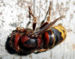 Wespenkönigin völlig regungslos, an einem im Herbst sorgfältig