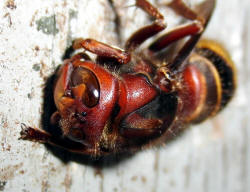 Wespenkönigin mit den Kieferzangen (Mandibel) am