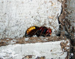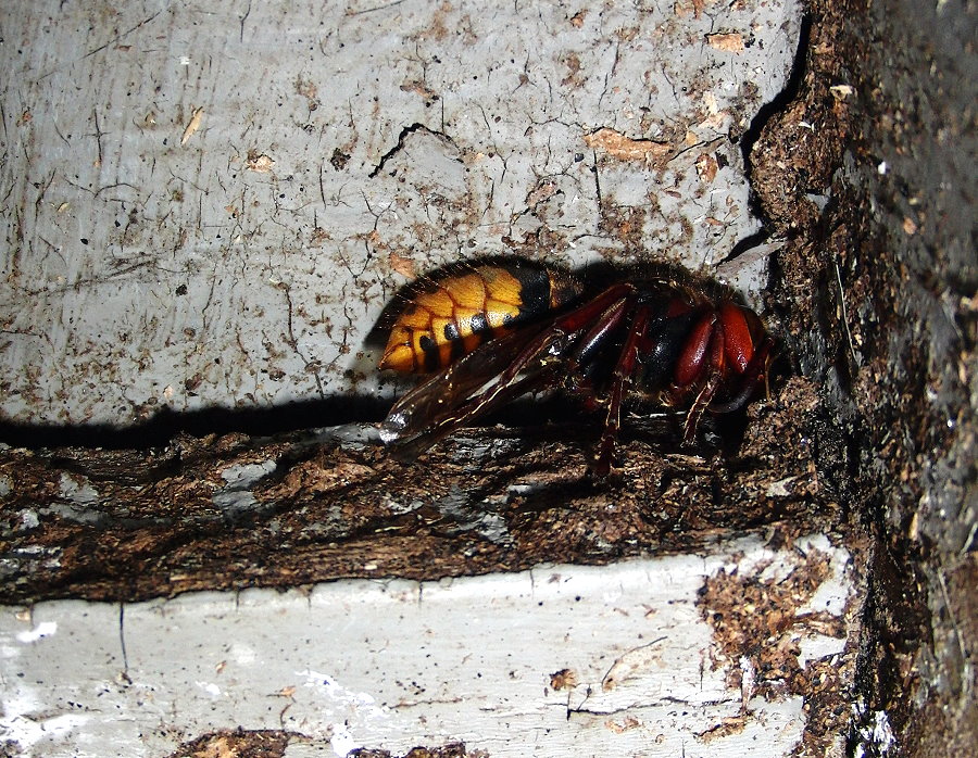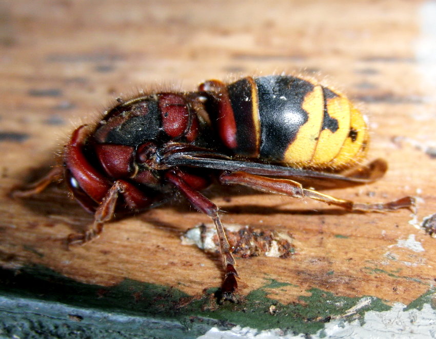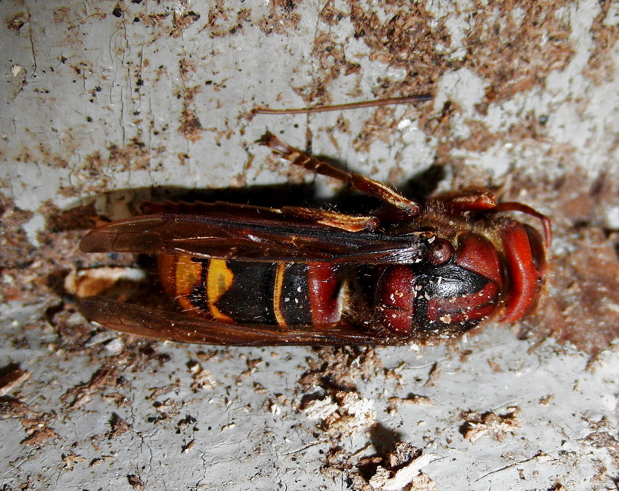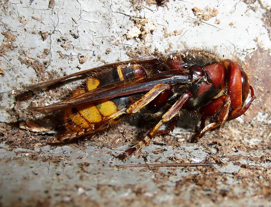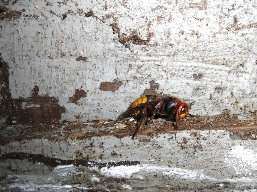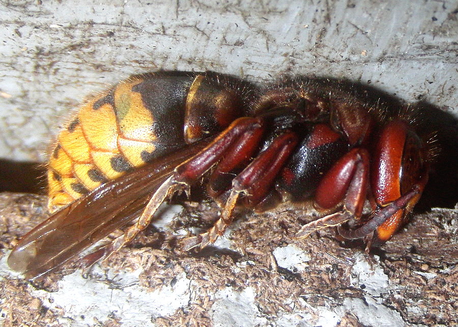 Hornissenkönigin aus dem Kasten. Sie ist steif und hat die typische