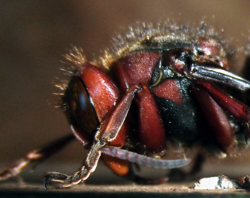 Porträtaufnahmen einer Hornissenkönigin in Winterruhe