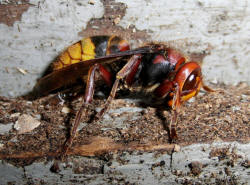 Hornissenkasten sehe ich eine andere Hornissenkönigin durch den Garten