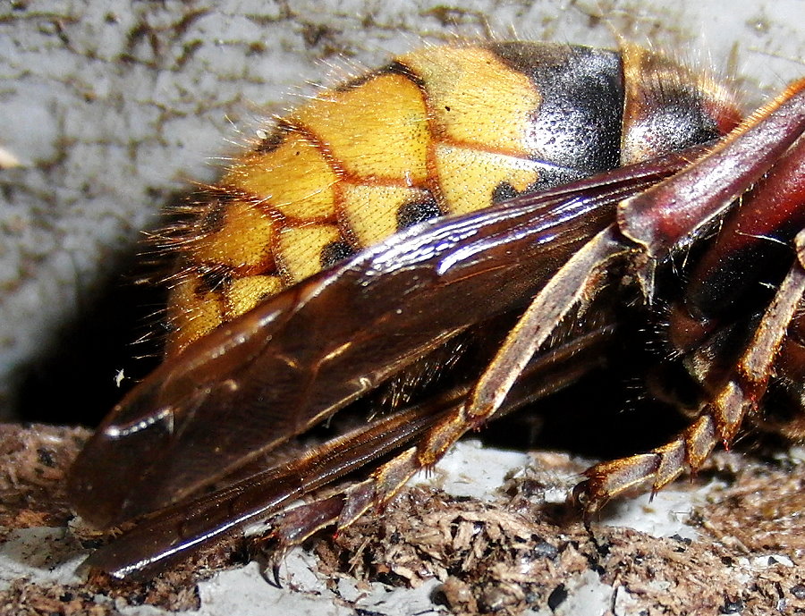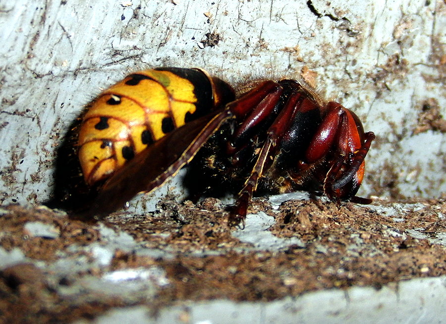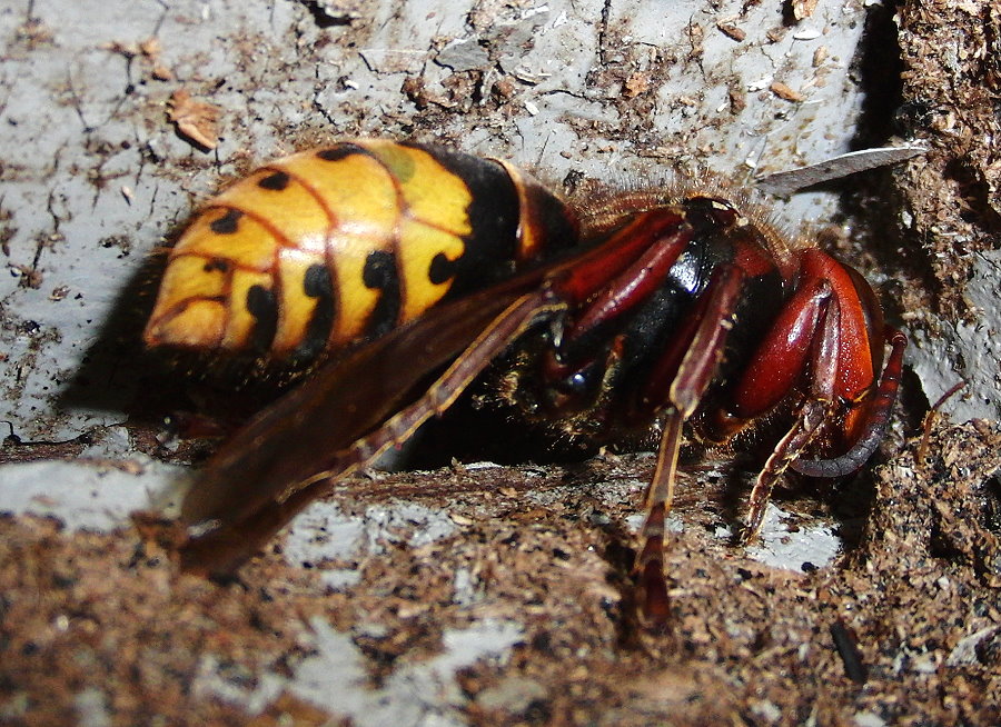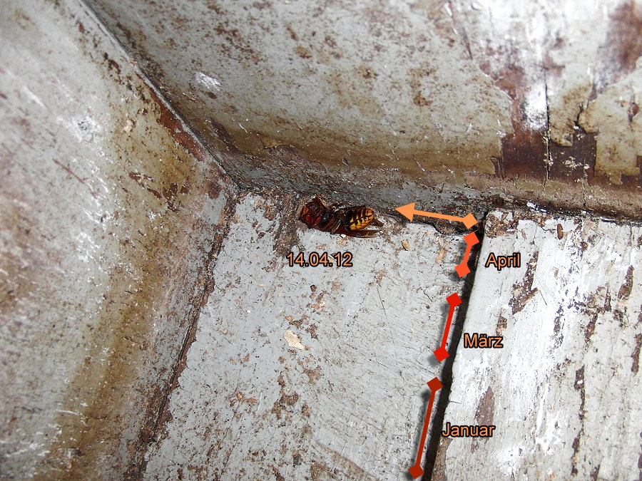 Boden des Hornissenkastens gelöst. Lediglich das linke Vorderbein ist